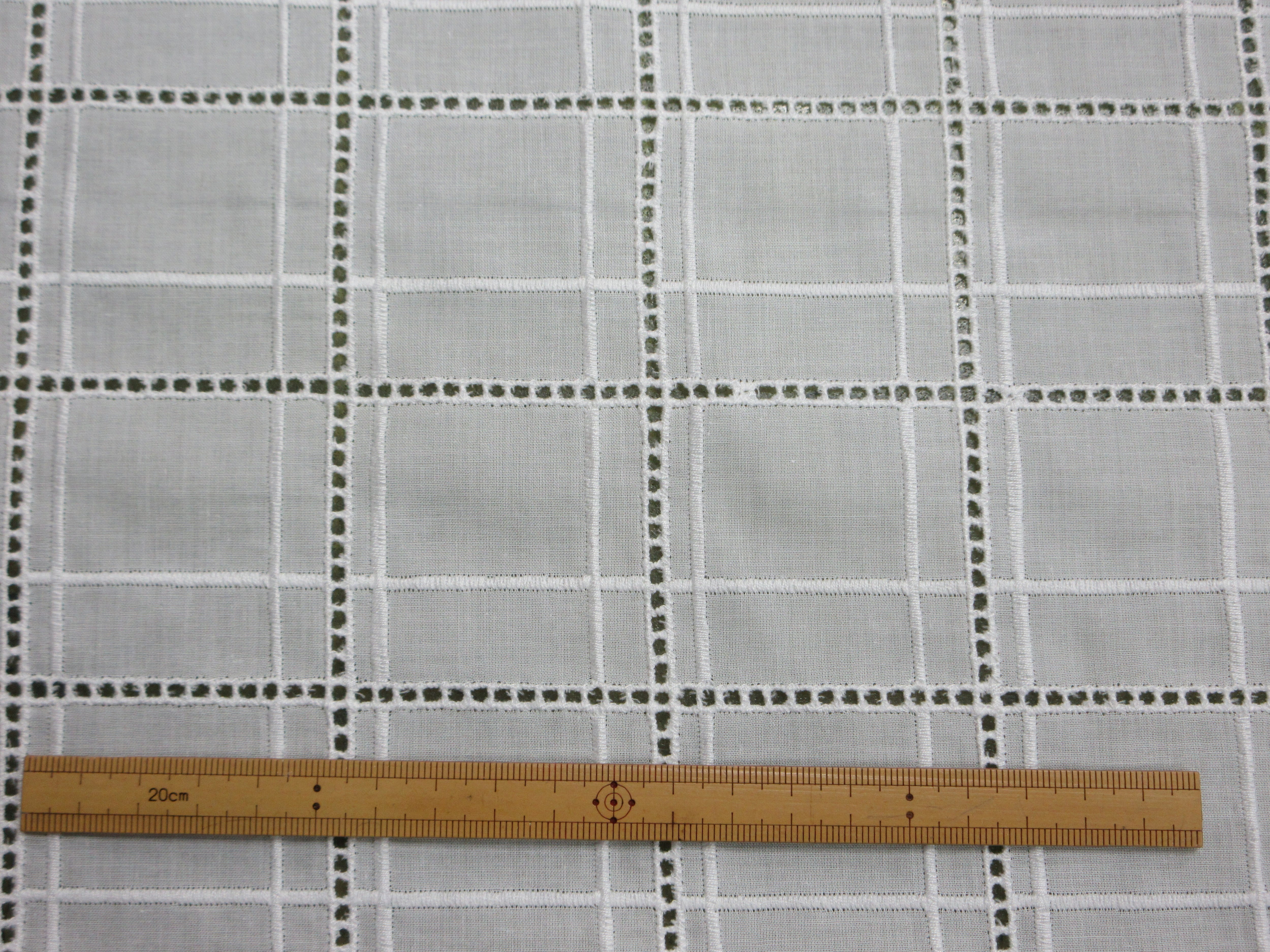 格子状の透け感が軽やかで、春夏のブラウスやワンピース、子ども服にも使いやすい上品な素材です。